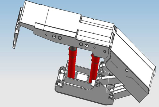 四柱輕型支撐掩護(hù)式液壓支架一般才高都比較小,本架型可以填補(bǔ)這段才高的空白。在架寬相同的窄架型中,本架型人行道和機(jī)道之間的過道寬;由于雙道排矸,所以排矸能力強(qiáng);由于單推桿偏置,所以可以減小傾斜工作面移架時的下滑量。由于本架型較窄、較輕搬運(yùn)方便,所以適用于在搬家較頻繁的工作面中使用。